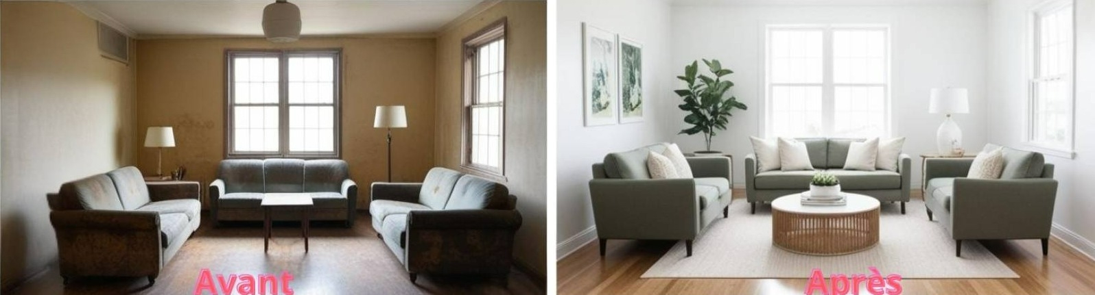 Accessoires déco : Rideaux légers, miroirs, coussins et tapis apportent une touche de modernité sans gros investissement.